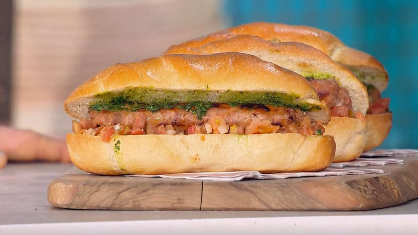 Quando il pane e le salsicce sono pronti, assembliamo il choripan: incisi i panini a metà, inseriamo la salsiccia e guarniamo con salsa chimichurri. Serviamoli caldi, accompagnati da pacciari e altre salse a piacere per un tocco di freschezza.