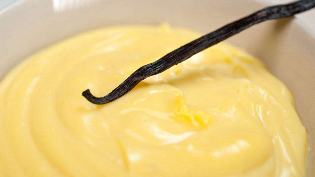 - Incidi il baccello di vaniglia e unisci i semi alla crema, mescolando bene.