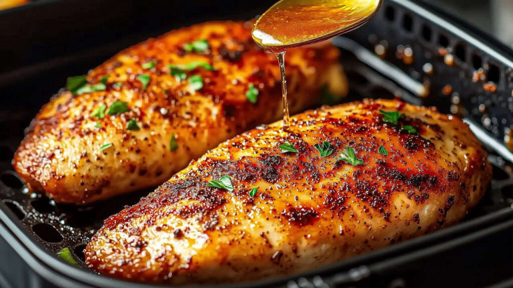 - Una volta preriscaldata, posiziona il pollo nella friggitrice ad aria e cuoci per 10 minuti.