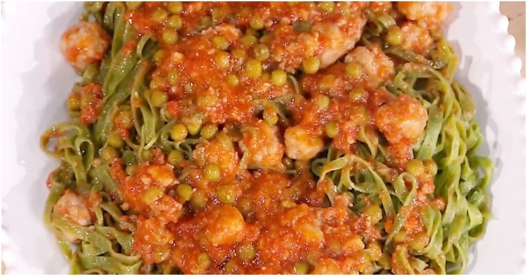 La preparazione inizia con l’impasto delle tagliatelle: farina, uova e ortiche lessate vengono mescolati fino a ottenere una sfoglia verde. Successivamente, la chef procederà a creare le polpette, utilizzando carne macinata e aromi freschi, prima di rosolarle in padella. Il tutto si unirà in un sugo ricco, arricchito da piselli e concentrato di pomodoro, dando vita a un piatto che celebra la tradizione culinaria italiana.