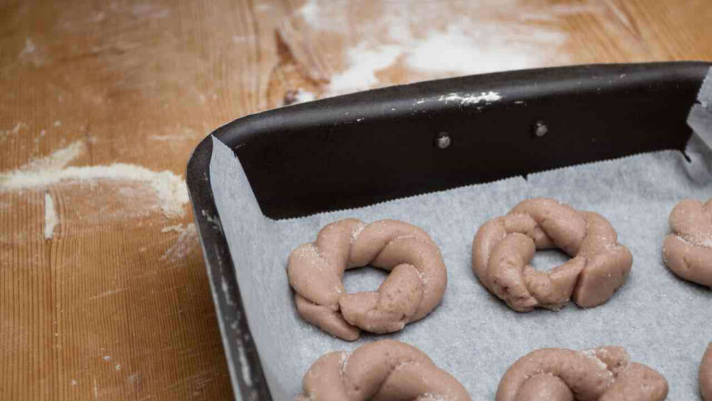 - Forma delle palline con l’impasto e disponile sulla teglia, schiacciandole leggermente.