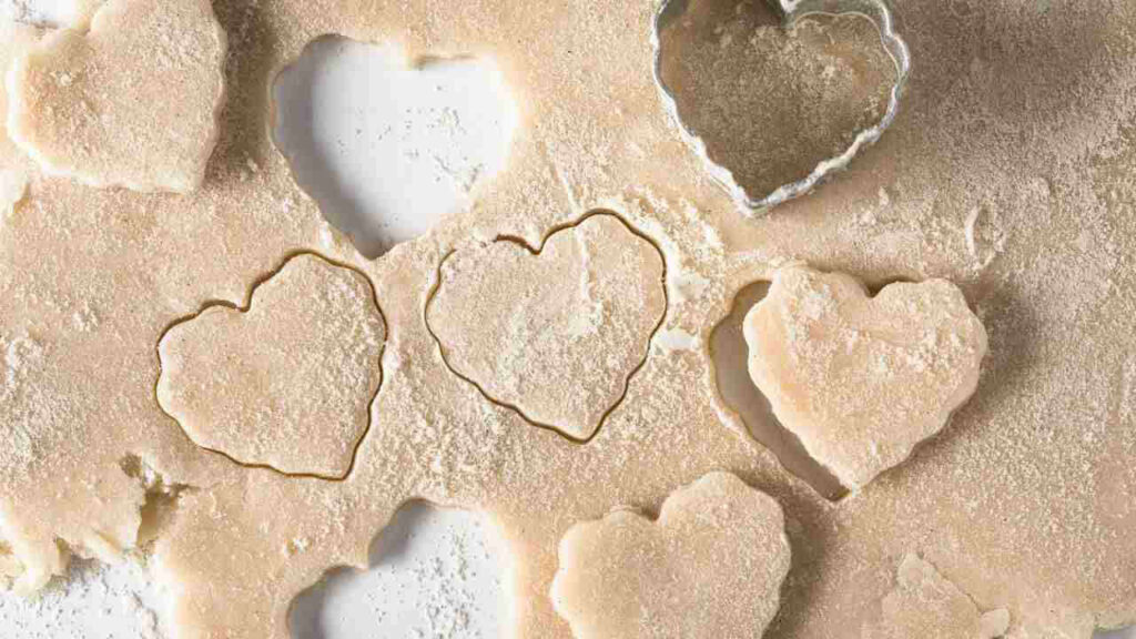 - Stendi l’impasto su una superficie infarinata fino a uno spessore di circa 5 mm e ritaglia i biscotti con le forme che preferisci.