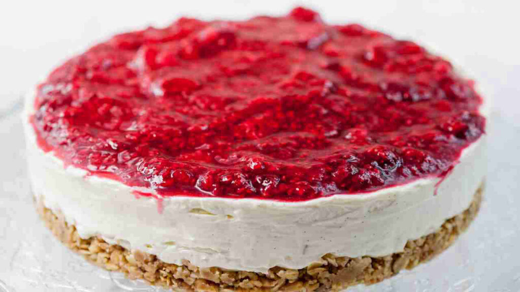 - Termina con un ultimo strato di confettura di lamponi e decora con qualche lampone fresco sopra.