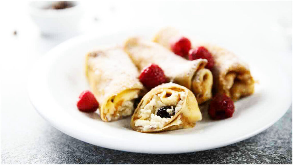 - Farciamo le crepes con il composto di ricotta e visciole, arrotolandole su se stesse.