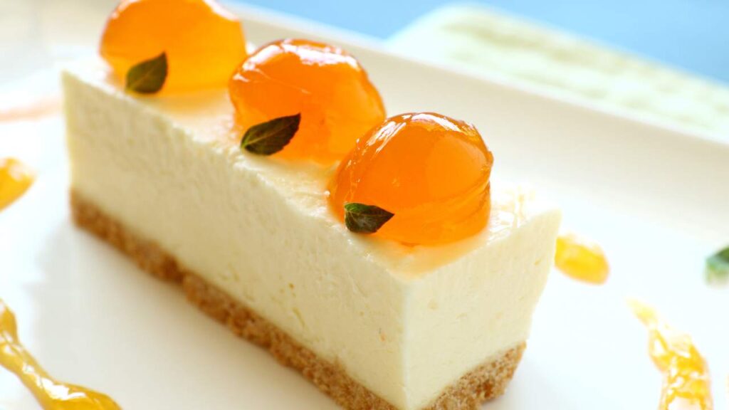 Versa la crema sulla base ormai solida e livella. Lascia che la cheesecake si consolidi in frigorifero. Se lo desideri, puoi arricchire il tuo capolavoro con della gelatina o guarnire con fette di arancia o spicchi di mandarini. Regalati una gustosa pausa senza rinunce!