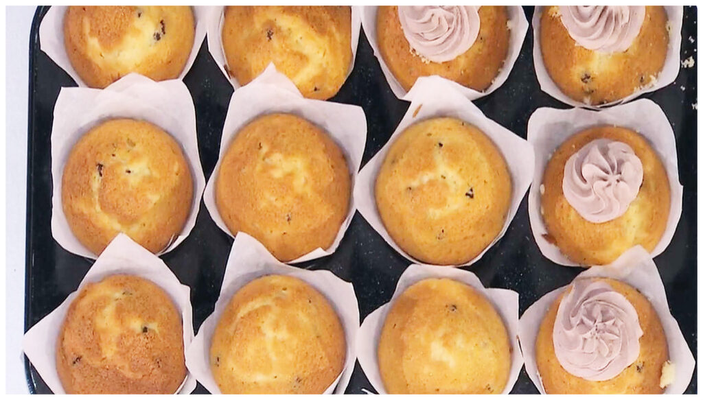 Riempite gli stampini da muffin fino a circa due terzi della loro capacità e infornateli in forno statico preriscaldato a 180°C per circa 20 minuti. Una volta cotti, lasciateli raffreddare completamente.
