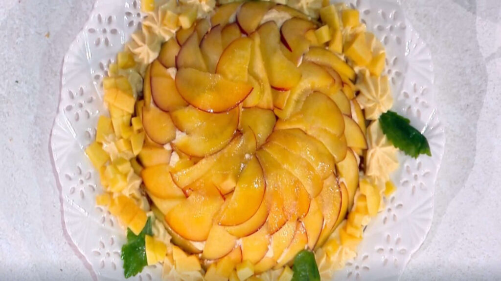 É sempre mezzogiorno, 16 maggio 2025 – Ricetta zuccotto alle pesche di Antonella Ricci – Procedimento