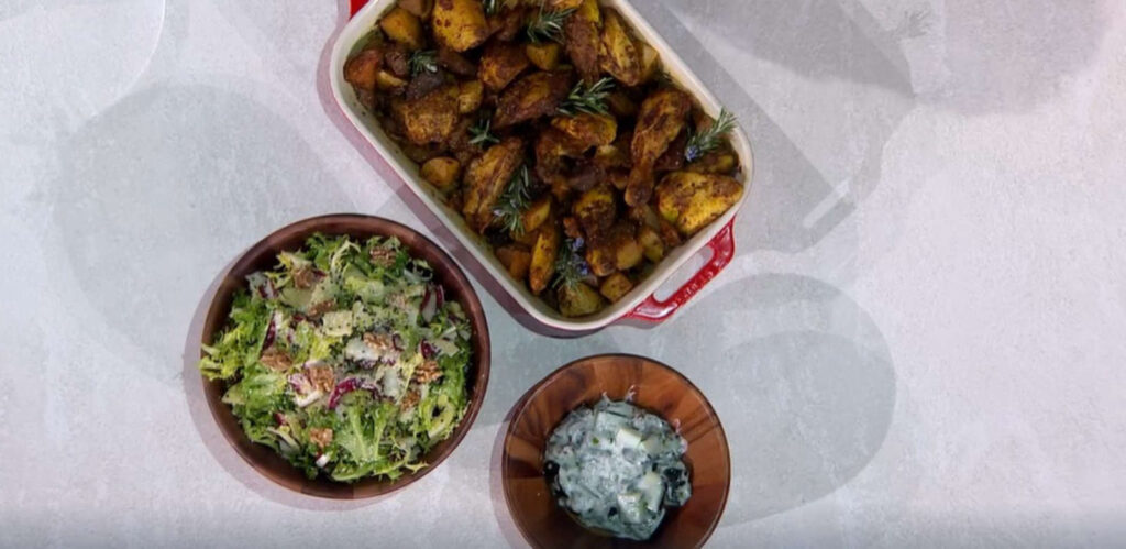 Infine, servite il pollo arrosto speziato accompagnato dalla salsa e dall’insalatina fresca. Buon appetito!