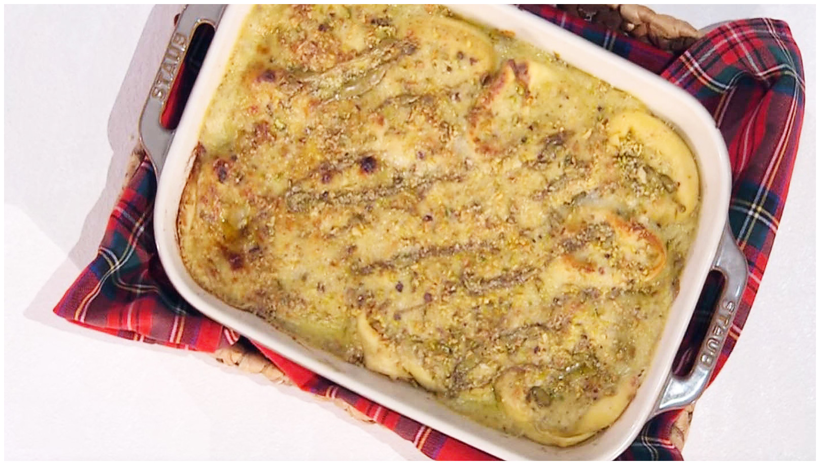 Nel frattempo, frullate i pistacchi con un po’ d’olio fino ad ottenere una crema liscia; unite questa alla besciamella, mescolando bene.