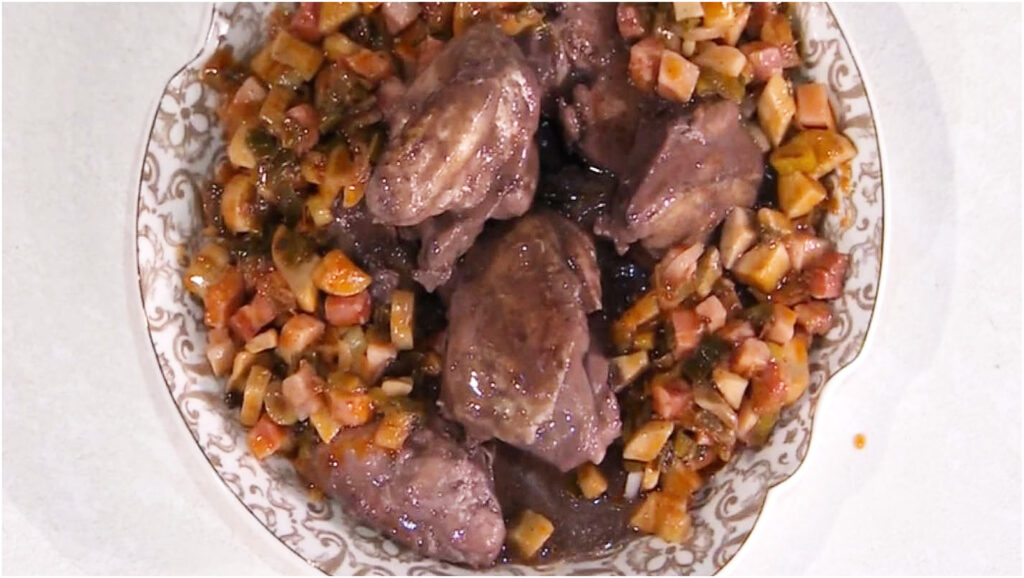 Nel frattempo, preparate un contorno delizioso: scaldate un altro filo d’olio in una padella e unite la pancetta, facendola rosolare. Dopo alcuni minuti, aggiungete i funghi, il cipollotto e il concentrato di pomodoro, mescolando bene. Coprite con un po’ di vino rosso e lasciate cuocere per circa 40 minuti, fino a quando le verdure non si saranno ammorbidite e il tutto sarà ben amalgamato.