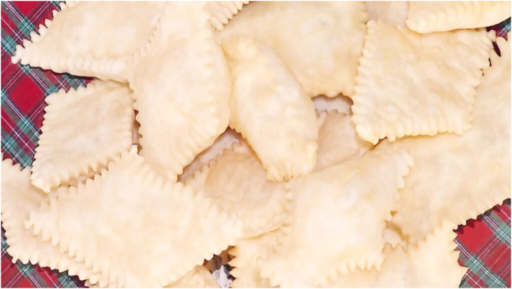 Una volta pronto, copriamo l’impasto e lasciamo lievitare in un luogo caldo per circa tre ore, in modo che raddoppi il suo volume. Trascorso il tempo di lievitazione, prendiamo l’impasto e stendiamolo con un mattarello o una sfogliatrice fino a ottenere uno spessore di circa 3-4 mm. Ritagliamo dei quadrati di pasta che poi tufferemo nello strutto o nell’olio ben caldo.