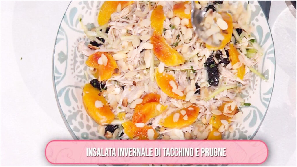 É sempre mezzogiorno, 23 gennaio 2026 – Insalata invernale di tacchino e prugne di Sonia Peronaci – Consigli e Varianti per la ricetta