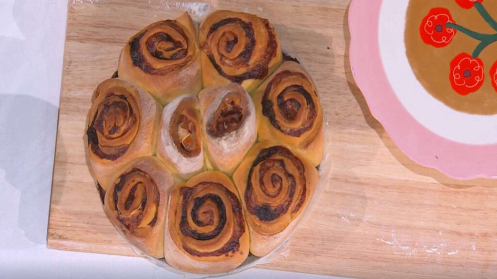 Tagliamo il rotolo in fette di circa 8 centimetri di spessore e le disponiamo a raggiera in una tortiera da 26 cm rivestita di carta forno. Lasciamo lievitare nuovamente per un’ora. Infine, accendiamo il forno a 190°C e inforniamo le rose salate, cuocendo per circa 25 minuti, finché non saranno dorate e gonfie.