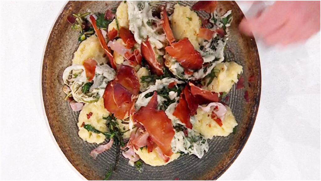 Un abbraccio di sapori: Gnocchi di patate con tarassaco e un tocco di speck!
