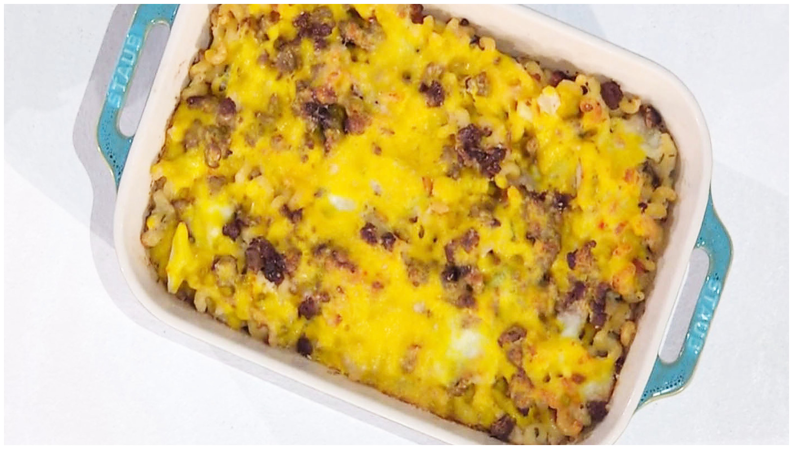 Prendete una pirofila e trasferite all’interno la pasta condita, livellandola uniformemente. Cospargete la superficie con la salsiccia rimanente, i pezzi di mozzarella, la besciamella e una generosa spolverata di formaggio grattugiato. Infine, infornate il tutto in forno preriscaldato a 180° C per circa 20 minuti, o finché non sarà dorato e croccante in superficie.