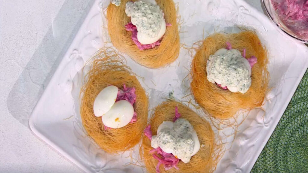 I Nidi Pasquali sono un piatto delizioso preparato con la pasta kataifi e farciti con una salsa fresca e saporita, perfetti per celebrare le festività pasquali. Questa ricetta, proposta da Daniele Persegani, è semplice ma di grande effetto, ideale per sorprendere i tuoi ospiti durante pranzi e cene speciali. Scopriamo insieme come prepararli!