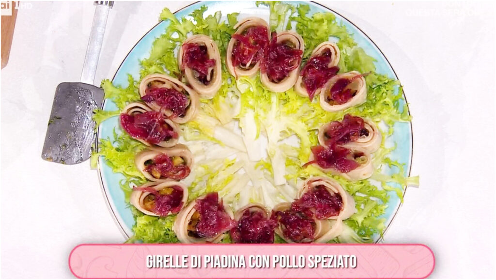 É sempre mezzogiorno, 5 febbraio 2026 – girelle di piadina con pollo speziato di Zia Cri – Procedimento