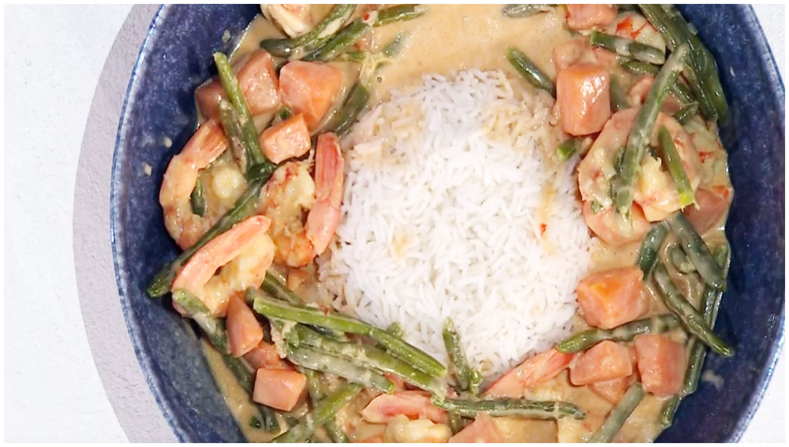 Nel frattempo, prepariamo i gamberi: dopo averli puliti, con un pizzico di sale, pepe e un velo di amido di riso, li rendiamo pronti per la cottura. Aggiungiamoli alla padella, mescolando delicatamente e cuocendo per circa 5 minuti, giusto il tempo che diventino rosati e teneri. Per servire, non dimenticate una porzione di riso basmati come accompagnamento, che assorbirà il delizioso sugo piccante.