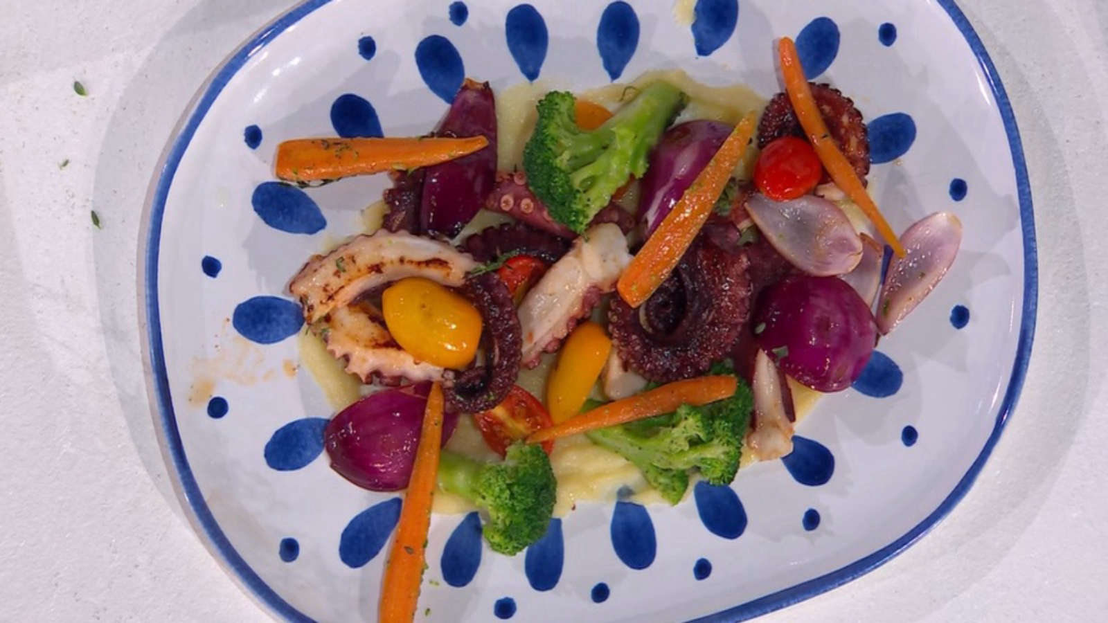 É sempre mezzogiorno, 7 ottobre 2025 – Ricetta catalana di polpo di Mauro e Mattia Improta – Procedimento