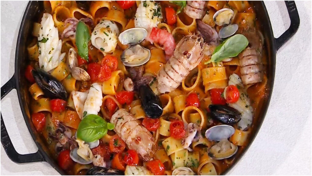 É sempre mezzogiorno, 8 aprile 2026 – Gran calamarata ai frutti di mare di David Fiordigiglio – Ingredienti