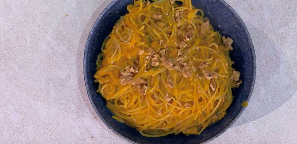 “È sempre mezzogiorno”, ricetta di oggi 10 ottobre 2024: Spaghetti zucca, salsiccia e noci di Federico Fusca – Informazioni ricetta