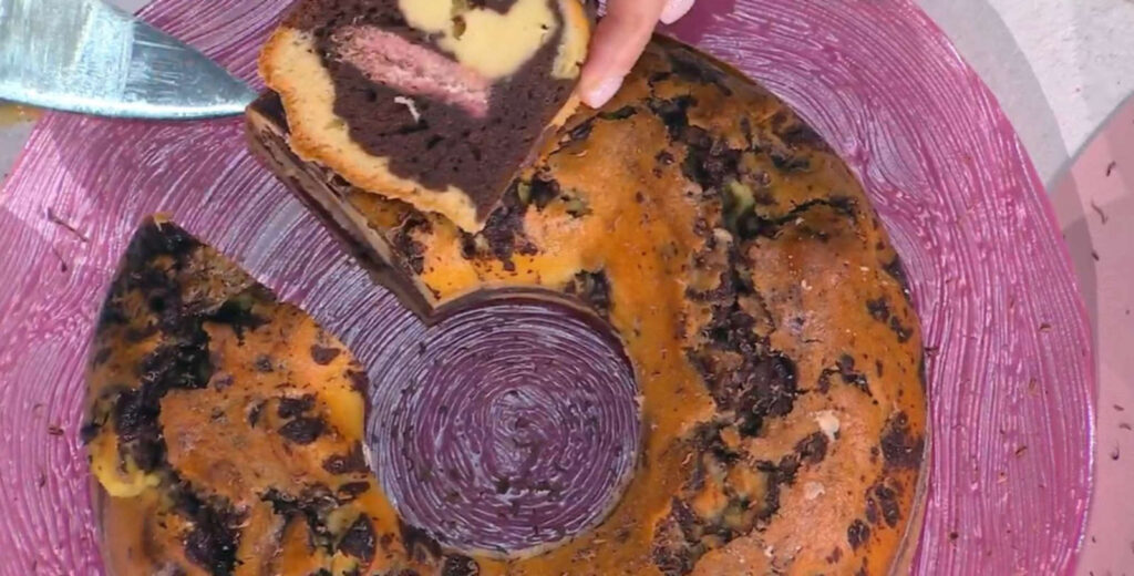 Per rendere questo ciambellone ancora più goloso, potete aggiungere delle gocce di cioccolato all’impasto sia chiaro che al cacao. Se preferite un sapore meno alcolico, potete sostituire l’alchermes con succo di frutta rosso (come arancia rossa o ribes). Inoltre, potete arricchire la crema pasticcera con pezzetti di frutta fresca come fragole o lamponi per un tocco di freschezza in più.