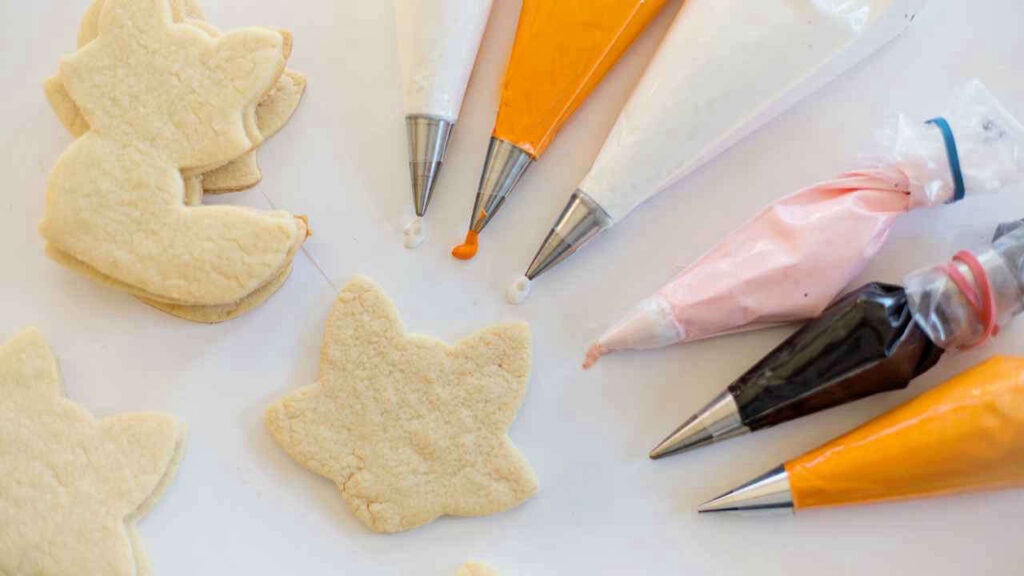6. Una volta raffreddati, guarnisci i biscotti con la glassa e lascia asciugare.