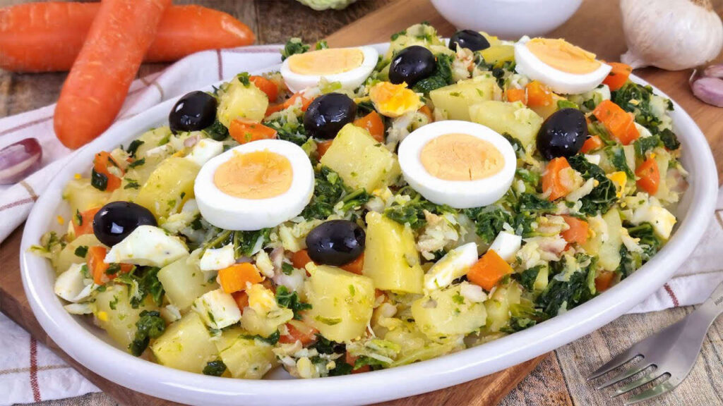Questa insalata di baccalà è un piatto bilanciato e può essere un’ottima opzione per chi cerca un pasto leggero e nutriente. Il baccalà è ricco di proteine e povero di grassi, mentre le verdure fresche apportano vitamine e minerali essenziali. Questa pietanza è perfetta per una cena sana o come pranzo in ufficio, e si presta a diverse varianti.