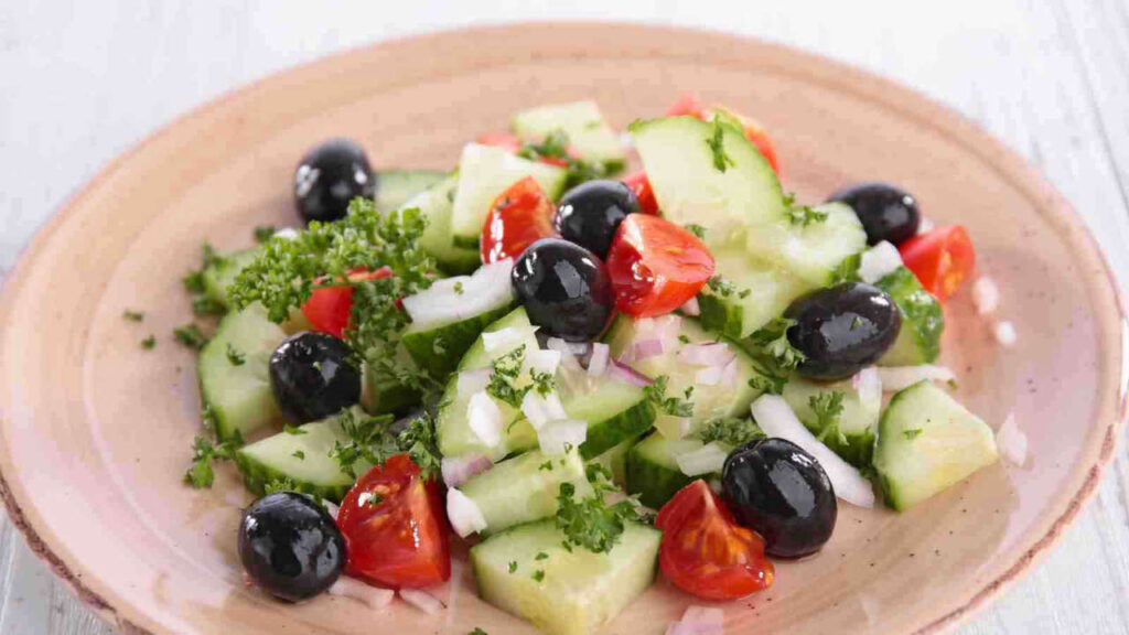 Questa insalata greca leggera non è solo deliziosa, ma anche incredibilmente salutare. Grazie ai cetrioli e ai pomodori, è ricca di vitamine e antiossidanti. È ideale per chi segue una dieta vegetariana o cerca un piatto leggero da portare in ufficio per un pranzo sano. Inoltre, essendo priva di feta, risulta più leggera, ma non sacrifica il gusto grazie all’uso delle erbe fresche aromatiche.