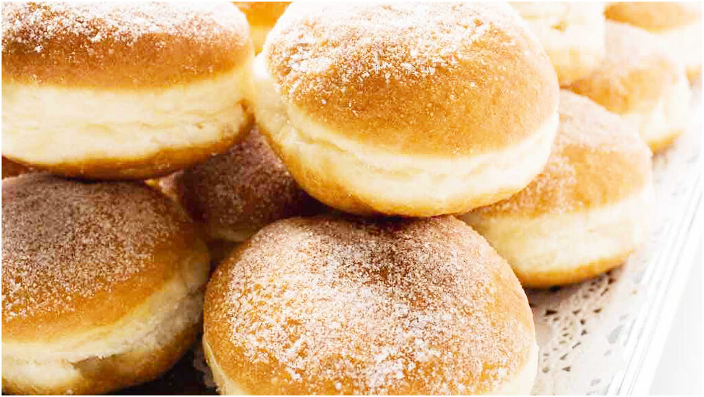 - Servi i krapfen caldi, spolverizzati con zucchero a velo!