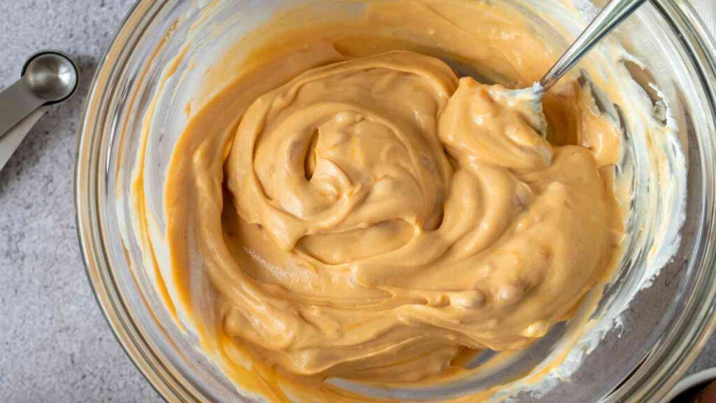 - Incorpora lentamente il caramello tiepido nella crema di mascarpone e panna, mescolando fino a ottenere un composto omogeneo.
