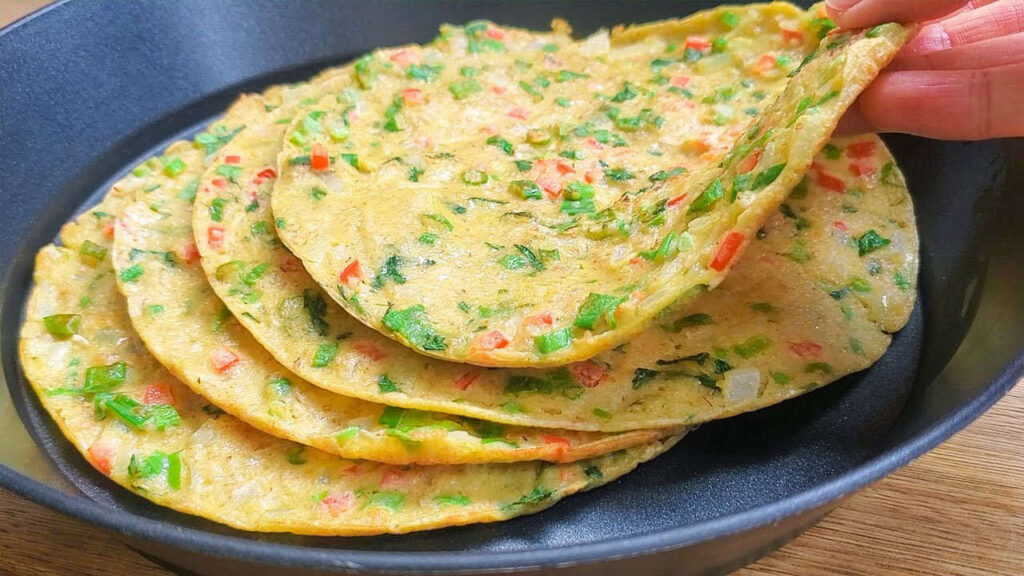 - Versa l’impasto nella padella formando un cerchio e cuoci per circa 2-3 minuti per lato.