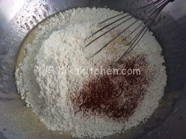 Aggiungere adesso tutte le polveri: la farina 00, la vanillina, il lievito, la cannella e un pizzico di sale.