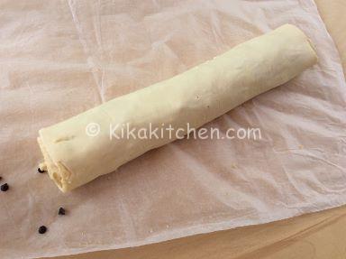 Arrotolare la pasta sfoglia dal lato più lungo per ottenere delle girelle più piccole e in maggiori quantità oppure dal lato più corto per ottenere delle girelle più grandi ma di numero inferiore.