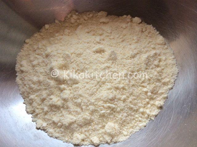 Nel frattempo tritare finemente la mandorle con lo zucchero a velo.