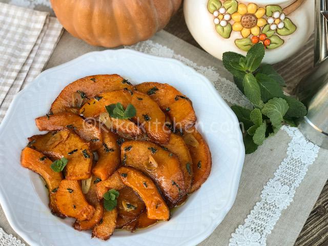 La zucca in agrodolce è uno sfizioso contorno, molto semplice da realizzare, a base di zucca fritta aromatizzata con aglio e menta. L’agrodolce è dato dallo zucchero e dall’aceto che vengono aggiunti alla zucca fritta a fine preparazione. Una ricetta tipica della tradizione gastronomica siciliana, da accompagnare sia a secondi di carne che secondi di pesce. Nonostante si tratti di una ricetta molto semplice ne esistono alcune varianti che prevedono l’uso di pinoli e uvetta oppure prezzemolo al posto della menta. La zucca agrodolce è un contorno che viene servito freddo, il sapore e il profumo risulteranno più intensi, dunque può essere preparata anche con largo anticipo.