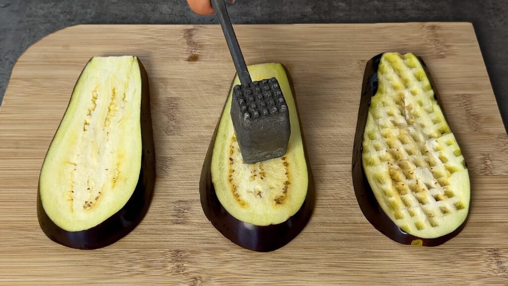 1. Preparazione delle melanzane: Lavate le melanzane e tagliatele a metà per il lungo. Scavate leggermente la polpa interna e mettetela da parte.
