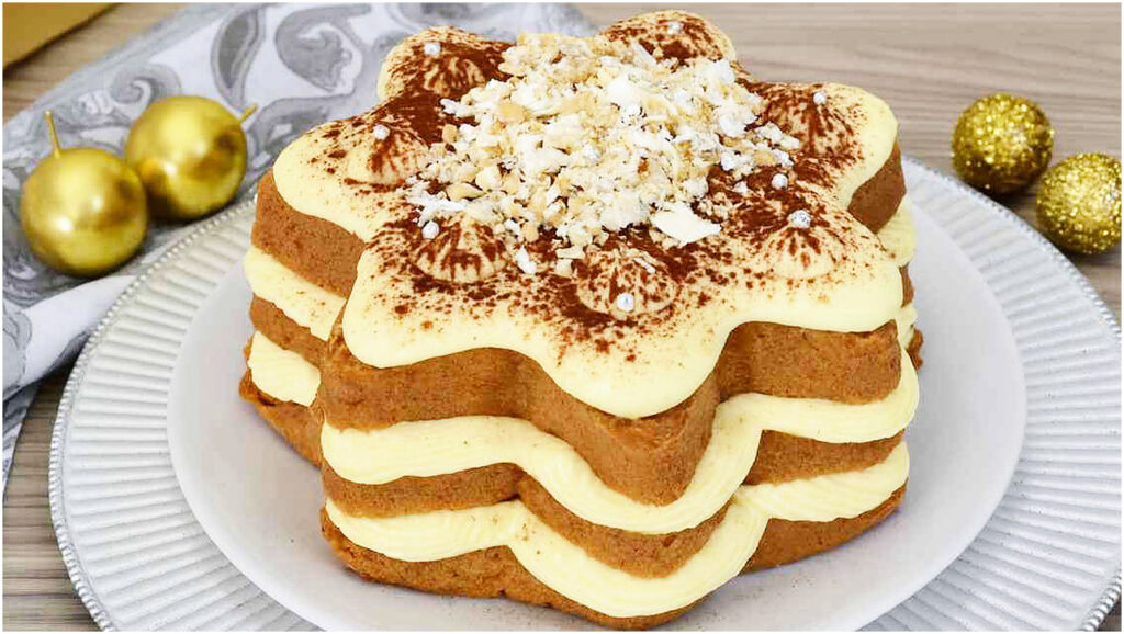 - In uno stampo, alterna strati di pandoro bagnato nel caffè e crema di mascarpone fino a esaurire gli ingredienti.