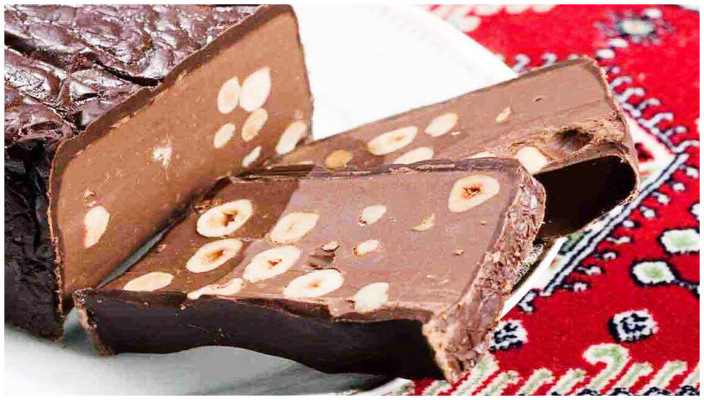 Risposta: Si prepara fondendo i vari cioccolati e mescolandoli con Nutella e nocciole, poi si raffredda in frigorifero.