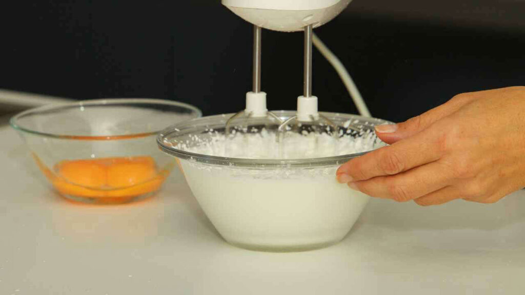 - Continua a montare fino a quando si formano picchi morbidi (circa 3-5 minuti).